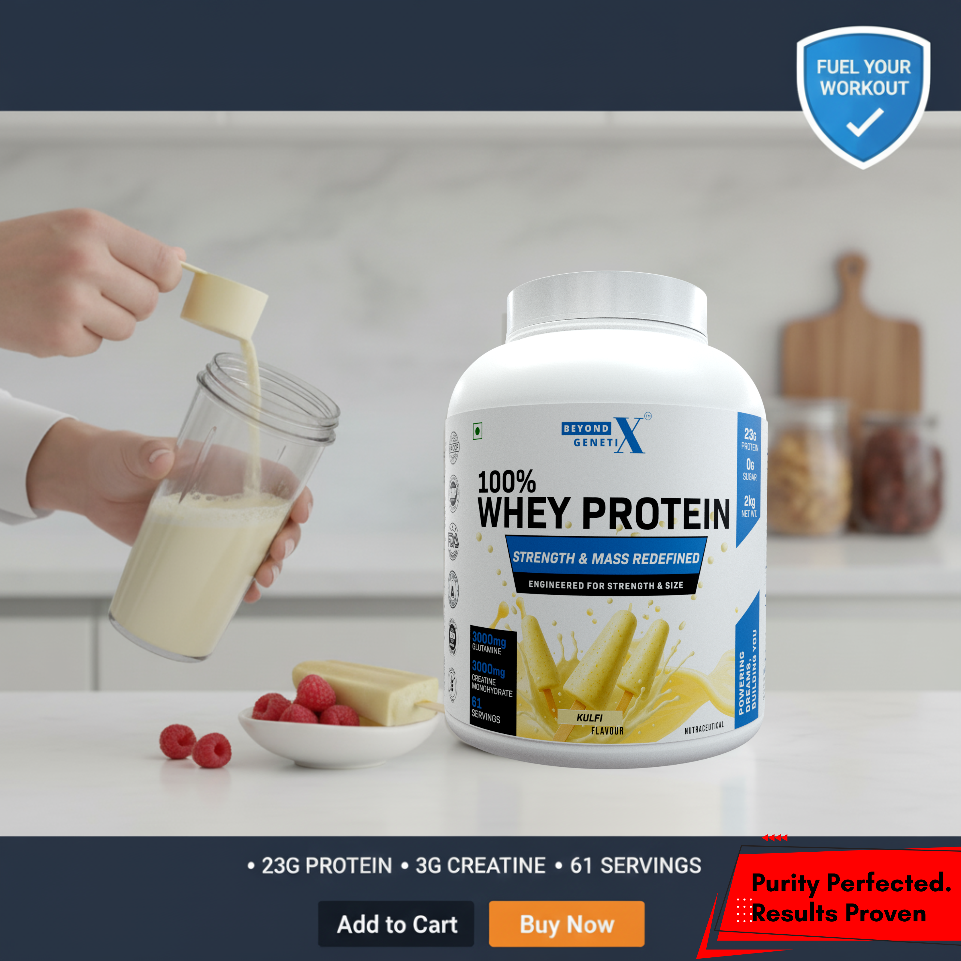 Experience the perfect fusion of taste and performance with Beyond Genetix Whey Protein. Each serving fuels your muscles with 23g of 100% pure whey protein, 3g glutamine, and 3g creatine β engineered to maximize strength, recovery, and endurance.
