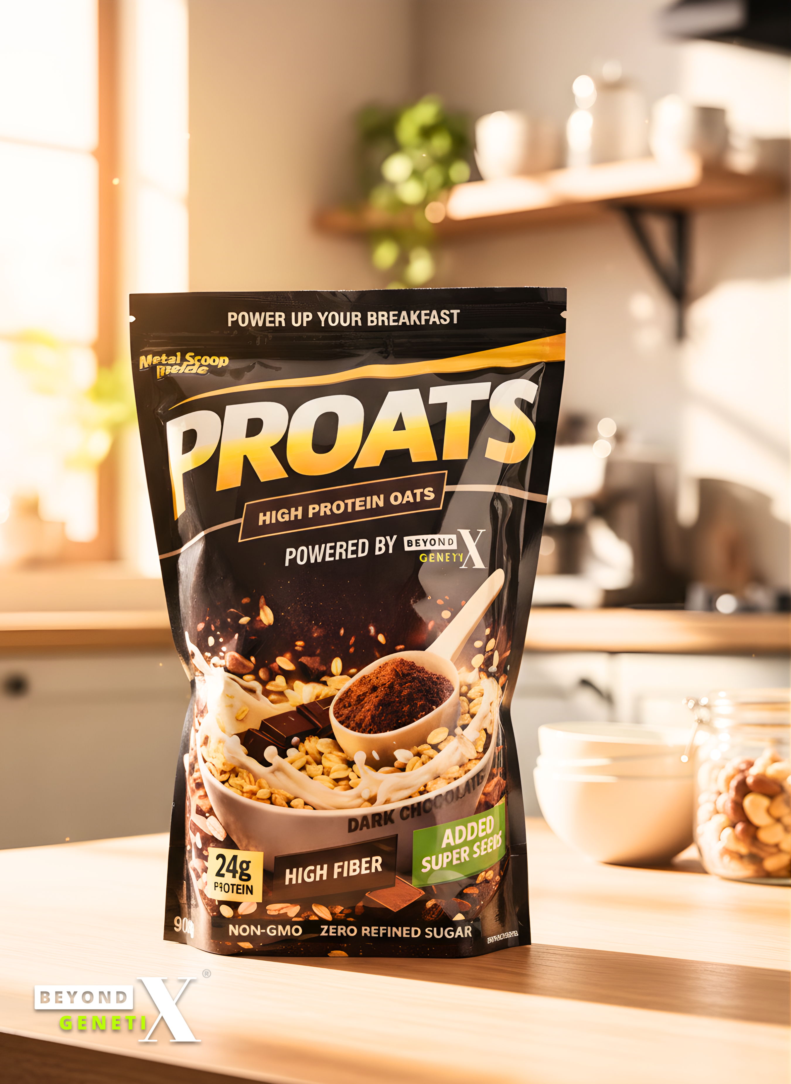 Fuel your mornings with Beyond Genetix PROATS Dark Chocolate High Protein Oats — a performance-focused breakfast designed for fitness lovers, athletes, and busy professionals who want nutrition without compromise.
